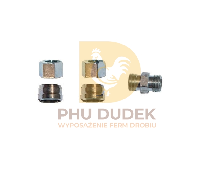 Łącznik do zamgławiania skręcany – element systemu schładzania i zraszania, przeznaczony do łączenia rurek nierdzewnych o średnicy 12 mm. Złączka dostarczana jest w komplecie z dwiema nakrętkami i pierścieniami, co zapewnia szczelny i trwały montaż.