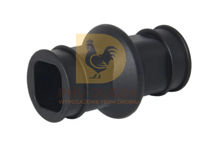 Łącznik (mufa) gumowa 22×22 mm stosowany jest w systemach pojenia drobiu do łączenia rur kwadratowych ze smoczkami. To praktyczny i niezawodny element montażowy, który zapewnia szczelność i stabilność instalacji wodnej w kurnikach.