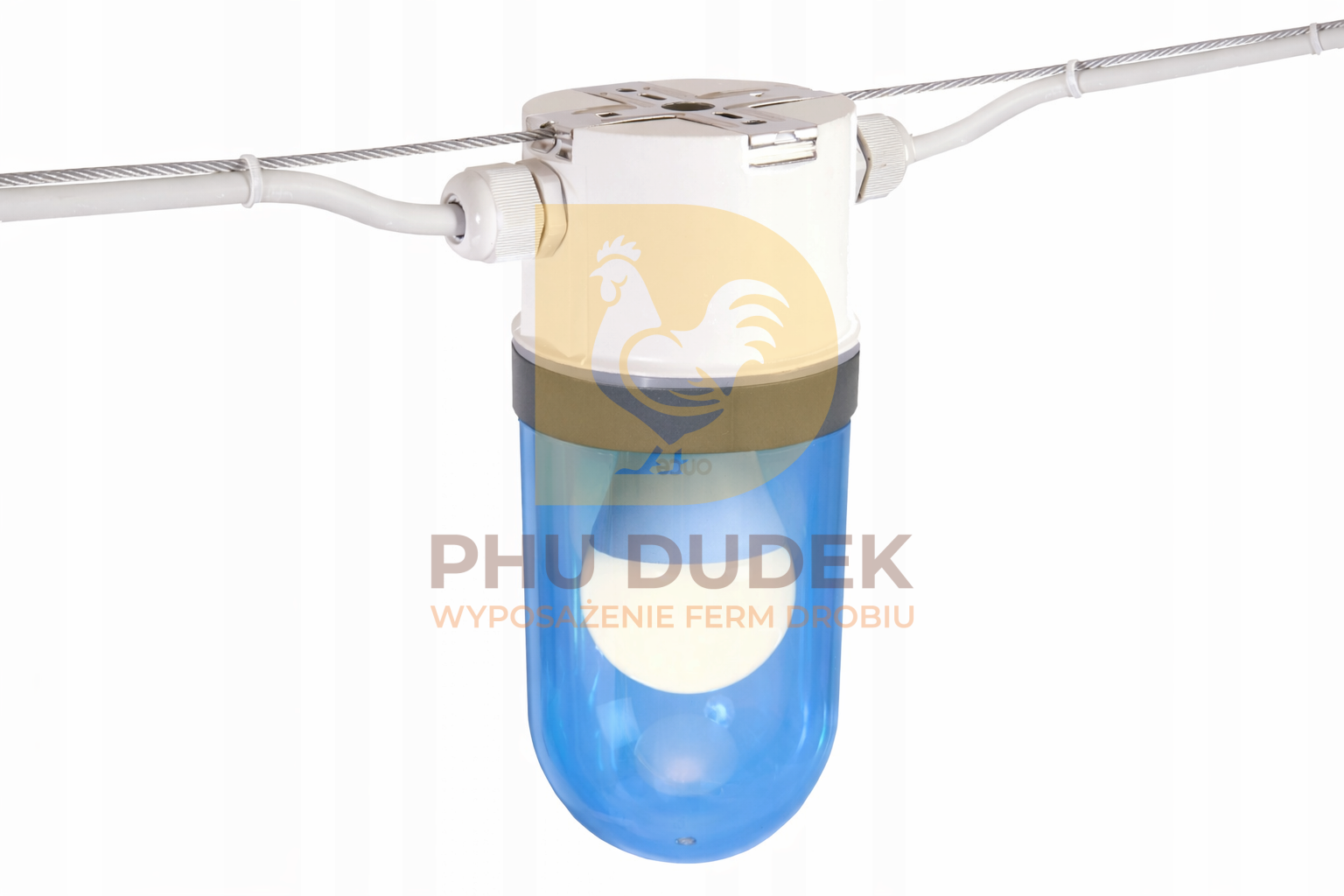 Niebieskie światło jest słabiej postrzegane przez ptaki, dzięki czemu działa uspokajająco i ogranicza ich aktywność. Jest to szczególnie przydatne podczas ubiórki stada, łapania oraz transportu drobiu. Dodatkowo żarówka o barwie 3000 K i funkcji ściemniania (0–100%) pozwala na precyzyjne sterowanie natężeniem oświetlenia.