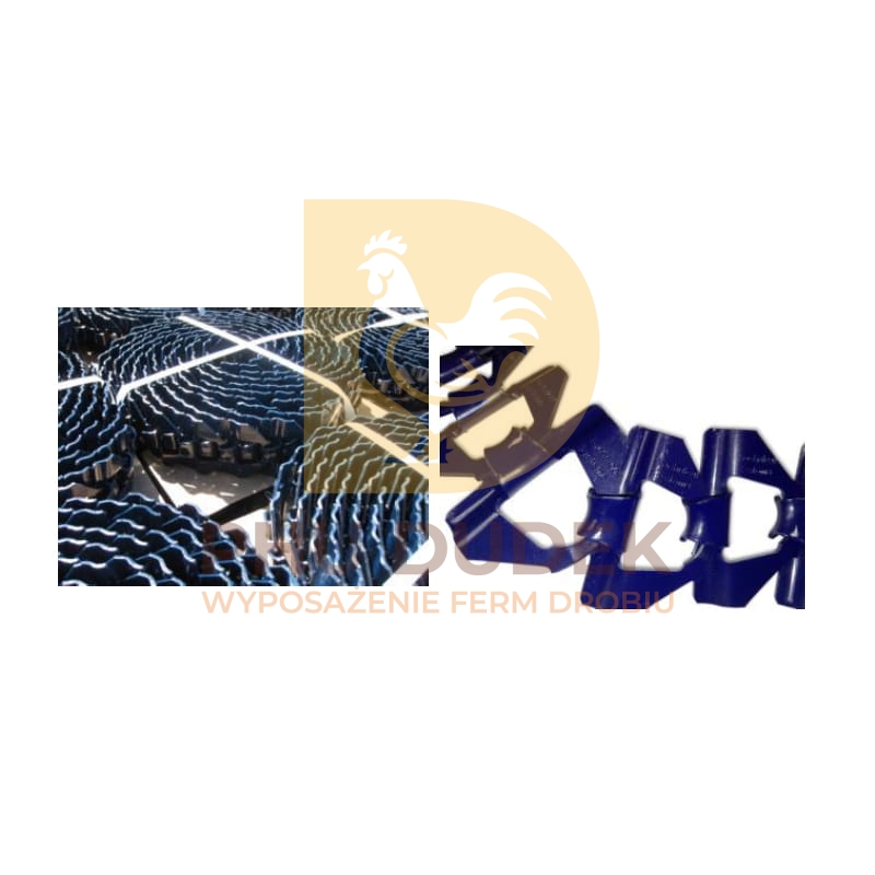 Łańcuch Typ S do paszociągu pełzakowego to solidny element stosowany w systemach karmienia drobiu. Wykonany z wytrzymałego materiału w charakterystycznym niebieskim kolorze, dostarczany w odcinkach po 10 metrów, co ułatwia montaż, serwis i wymianę fragmentów w instalacji.