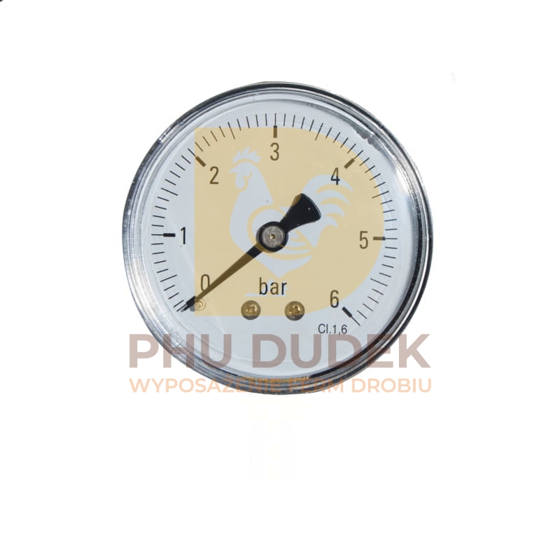 Manometr 0–6 bar z tylnym gwintem to precyzyjne urządzenie do kontroli ciśnienia wody w systemach pojenia i instalacjach wodnych w kurnikach. Dzięki czytelnej tarczy i solidnej konstrukcji pozwala na szybki odczyt parametrów oraz zapewnia bezpieczeństwo pracy całej instalacji.
