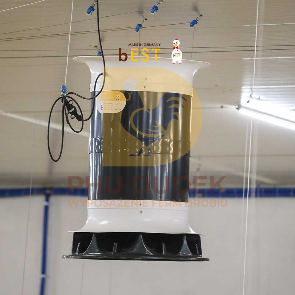 Mieszacz Zefir to nowoczesne rozwiązanie do optymalizacji mikroklimatu w kurnikach i innych budynkach inwentarskich. Urządzenie zapewnia pionowe mieszanie powietrza, równomiernie rozprowadzając je po całym obiekcie. Dzięki temu poprawia komfort zwierząt, ogranicza przeciągi, redukuje stężenie szkodliwych gazów oraz zmniejsza zużycie energii do ogrzewania i chłodzenia.