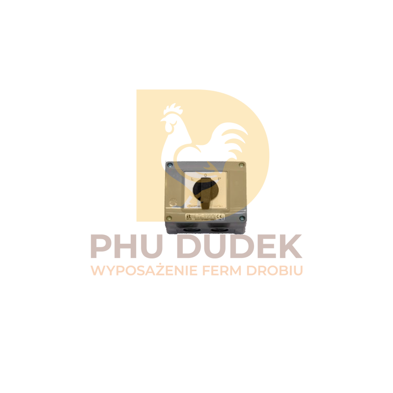 Przełącznik 16A to kierunkowy przełącznik elektryczny stosowany do sterowania wciągarkami, windami paszowymi i systemami podwieszania linii pojenia. Umożliwia bezpieczny ruch w lewo i w prawo, co ułatwia obsługę instalacji w budynkach inwentarskich. Dzięki kompaktowej obudowie o wymiarach 11,5×10×8 cm sprawdza się w miejscach o ograniczonej przestrzeni montażowej. Przystosowany do obciążenia 16 A, zapewnia niezawodną pracę i odporność na trudne warunki fermowe.