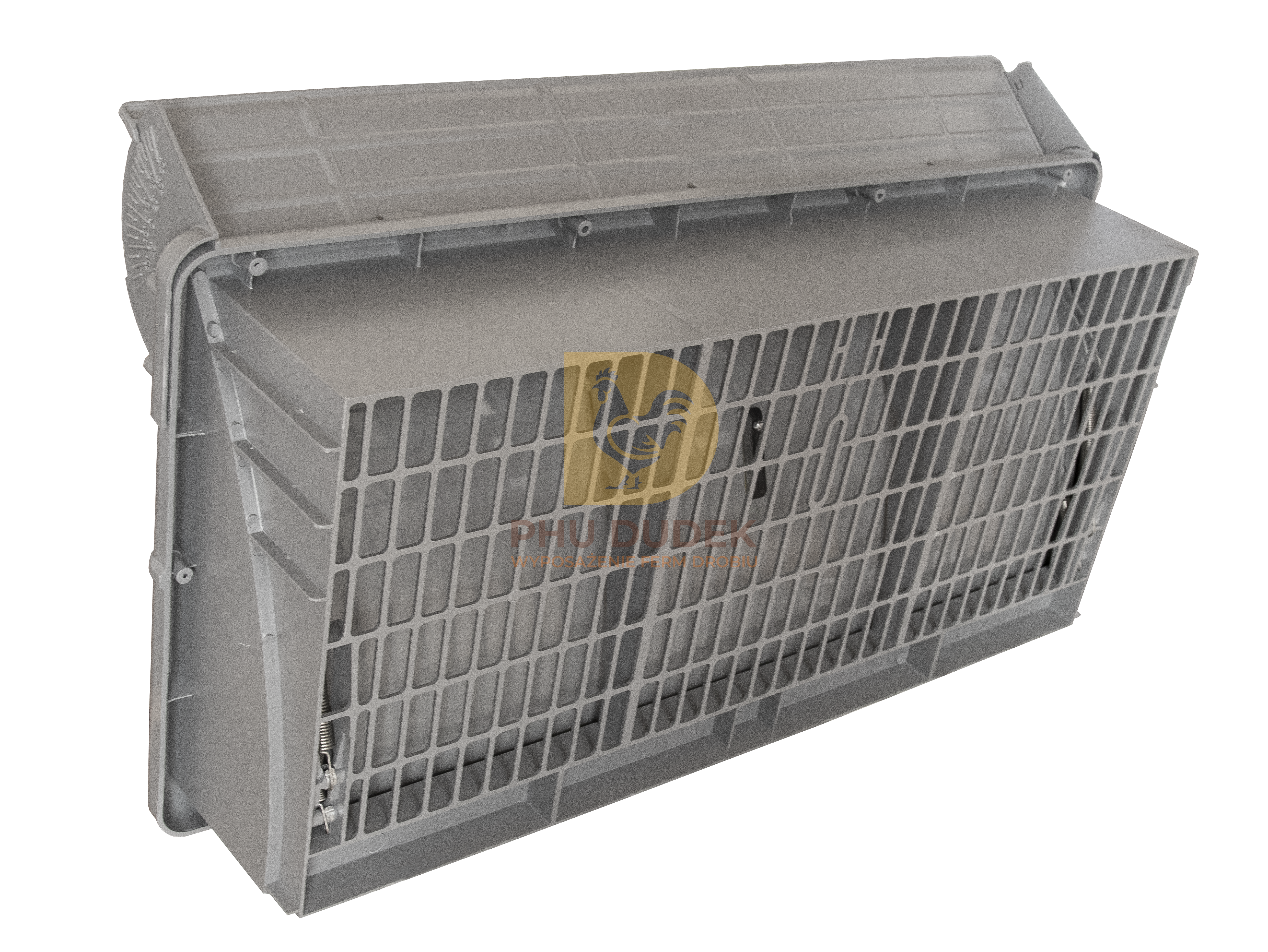 Wlot powietrza German bEST 1 z listwą kierunkową znajduje zastosowanie w kurnikach, brojlerniach i innych budynkach hodowlanych, gdzie kluczowa jest precyzyjna kontrola strumienia powietrza. Dzięki listwie kierunkowej powietrze kierowane jest ku górze, co wspiera równomierną wentylację i poprawia warunki klimatyczne wewnątrz budynku.