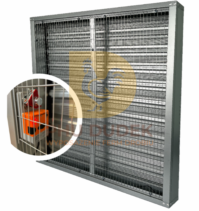 Żaluzja nierdzewna A2 z siatką 138×138 (złożona) z wbudowanym siłownikiem Belimo to trwały i funkcjonalny element systemów wentylacyjnych w fermach drobiu, trzody chlewnej oraz innych zwierząt gospodarskich. Zapewnia skuteczny i wydajny wlot świeżego powietrza do kurnika.