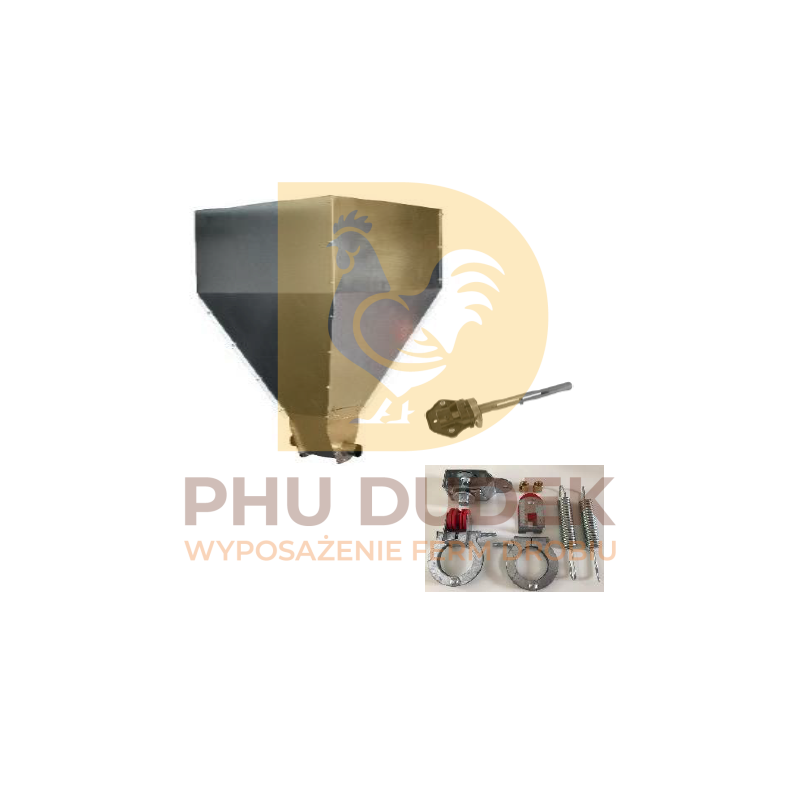 Kosz zasypowy o pojemności 100 kg umożliwia wygodne i równomierne zasypywanie paszy, a jarzmo nierdzewne wraz z wałkiem stabilizuje spiralę transportującą, zapewniając prawidłową pracę całej linii. Mocowanie antygrzędy zabezpiecza instalację przed ptakami, zwiększając higienę i bezpieczeństwo systemu.